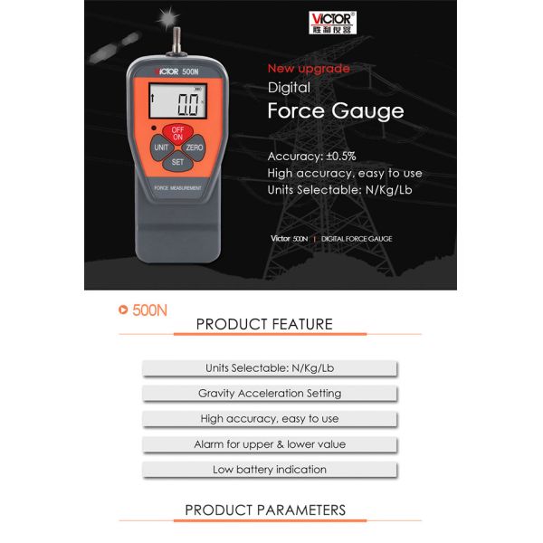 VICTOR 10N/50N/100N/200N/300N/500N A Simple Push Pull DIGITAL FORCE GAUGE 1kg 5kg 10kg 20kg 30kg 50kg
